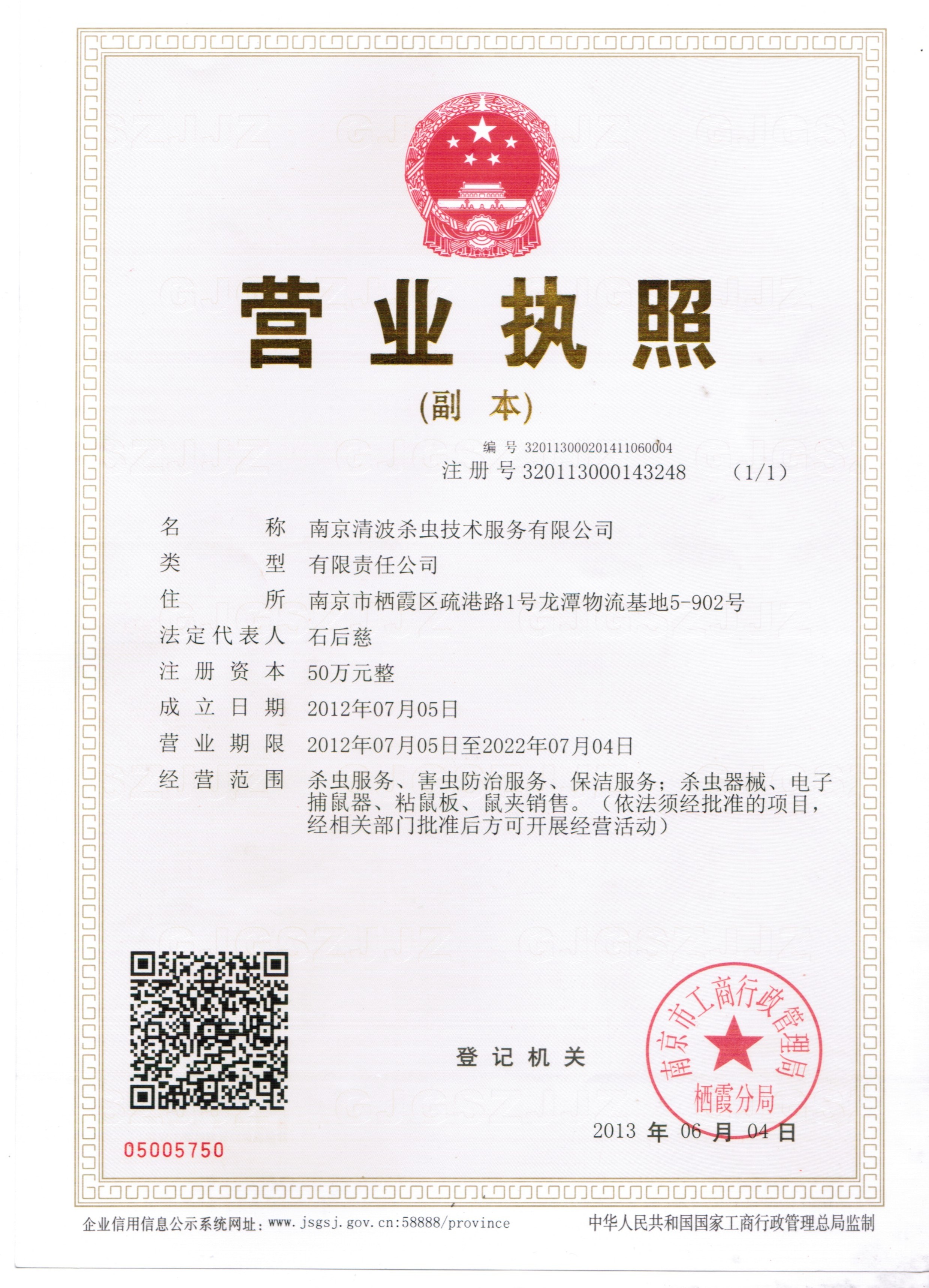 熱烈祝賀南京清波殺蟲(chóng)技術(shù)服務(wù)